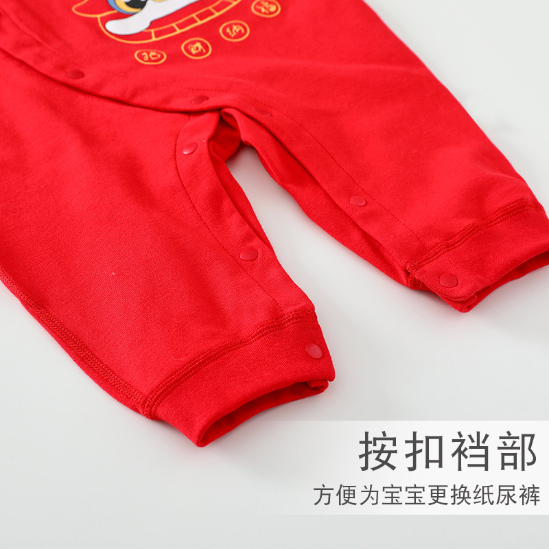 婧麒满月婴儿衣服春秋套装百天新生儿连体衣秋季红色宝宝满月衣服
