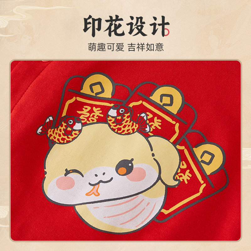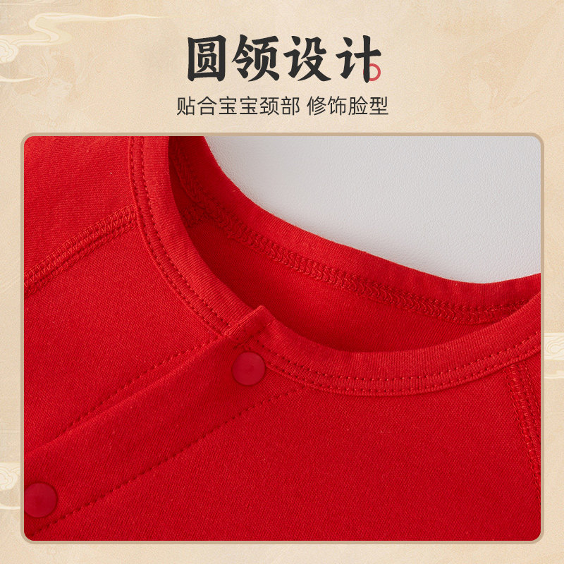 婧麒新生婴儿满月宝宝衣服周岁秋冬季打底百天百岁宴红色连体衣
