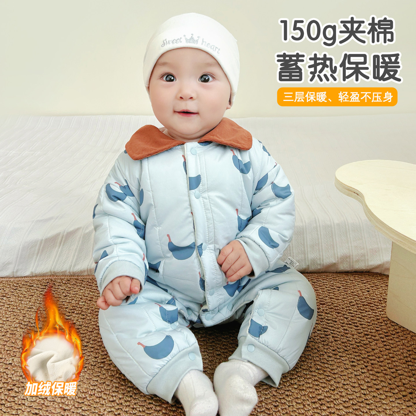 贝肽斯婴儿薄夹棉连体衣冬装外出新生幼儿宝宝衣服保暖空气棉睡衣