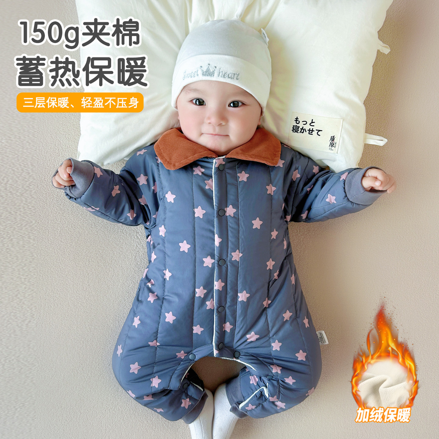 宝宝保暖连体衣秋冬款新生儿夹棉哈衣爬服男女婴幼儿加厚睡衣冬装