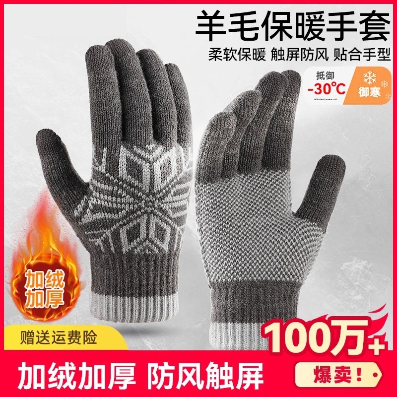 手套男冬季加绒保暖羊毛户外防风可触屏骑行电动车加厚防寒女针织