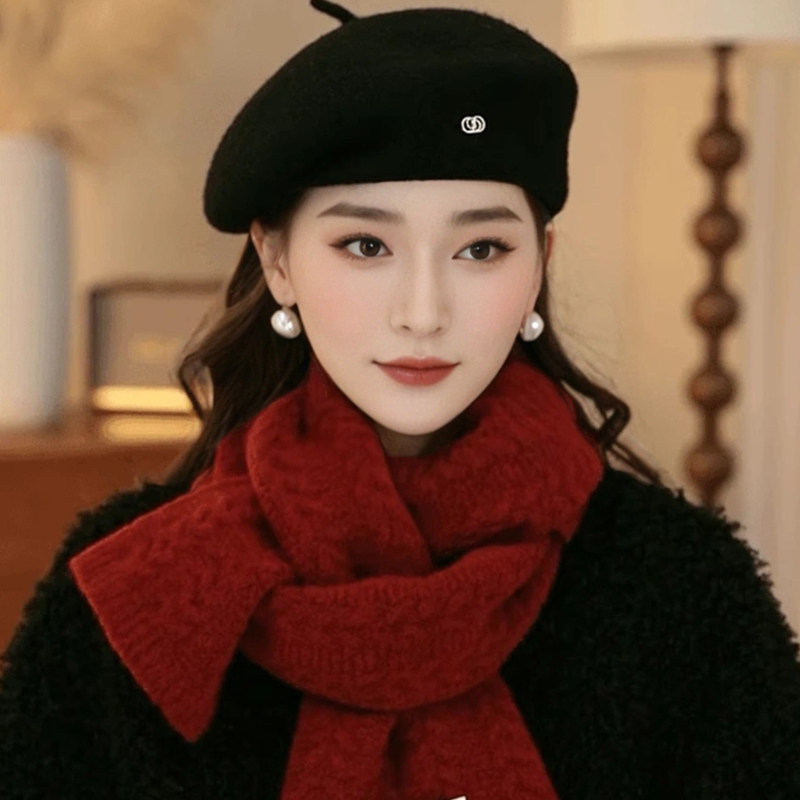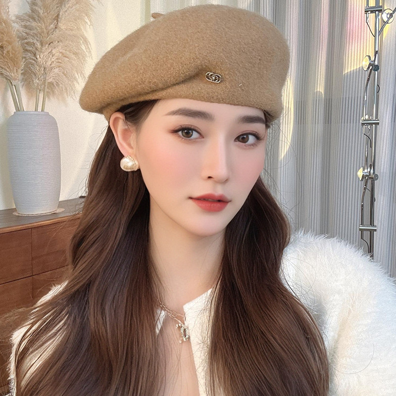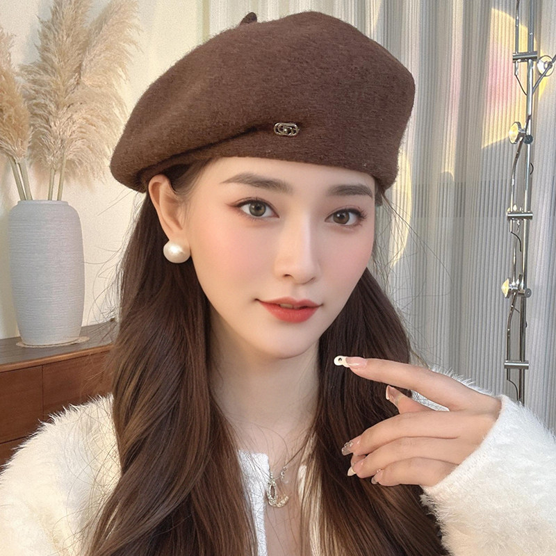 韩版气质保暖贝雷帽子女秋冬季毛呢时尚定型显脸小画家帽蓓蕾帽