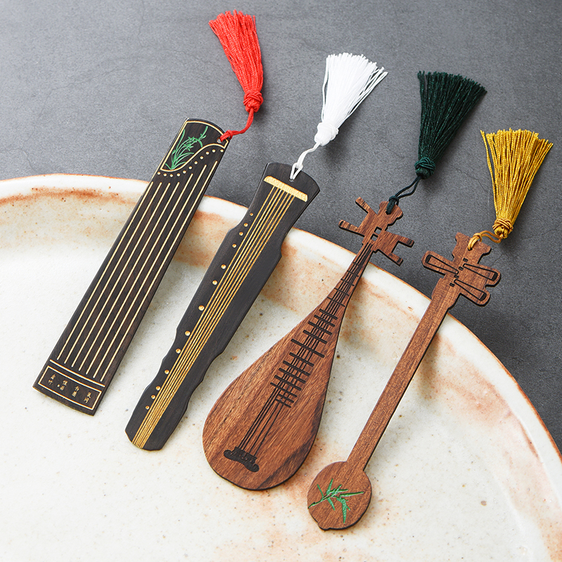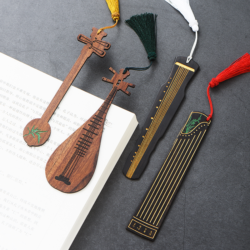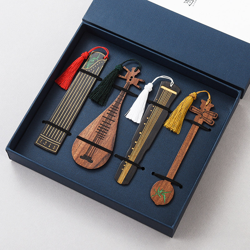 红木质彩绘乐器书签套装礼盒 复古典中国风创意黑檀木制个性文艺送老师学生刻字公司纪念品商务礼品定制logo
