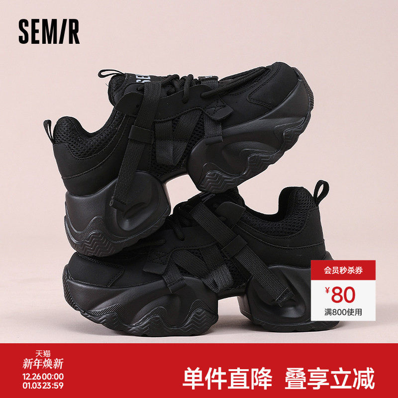 Semir女鞋老爹鞋女款2025新款秋冬厚底鞋休闲网面透气网鞋运动鞋