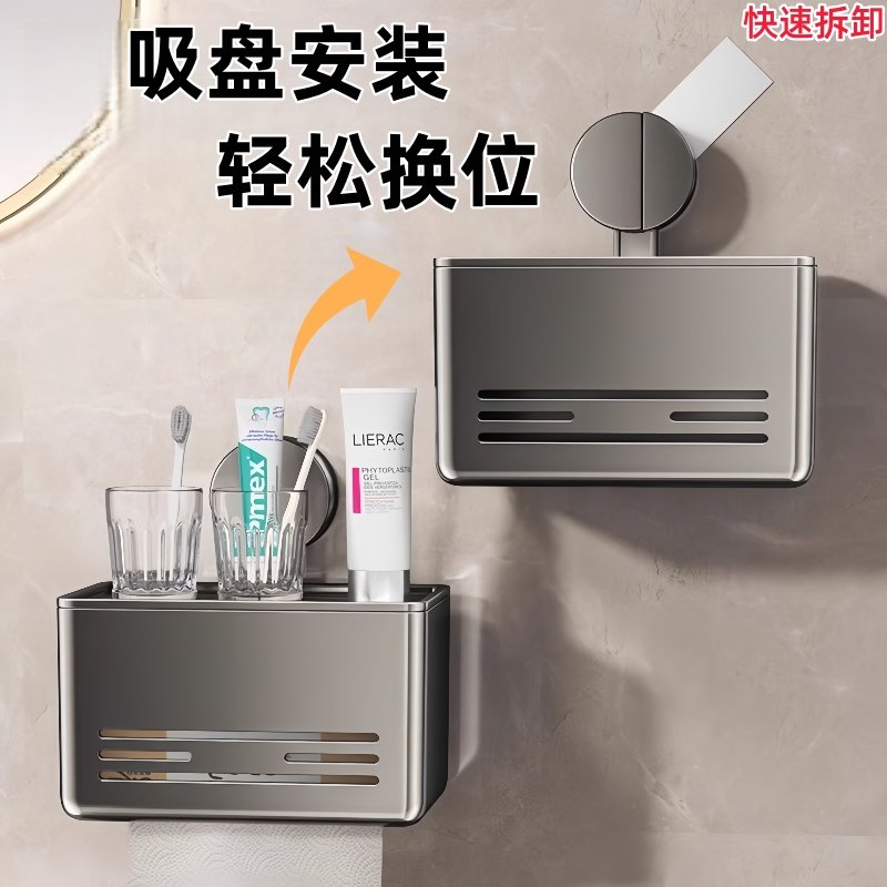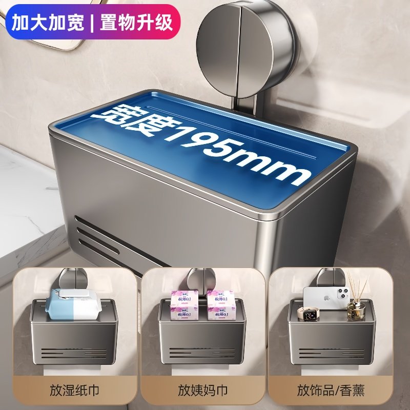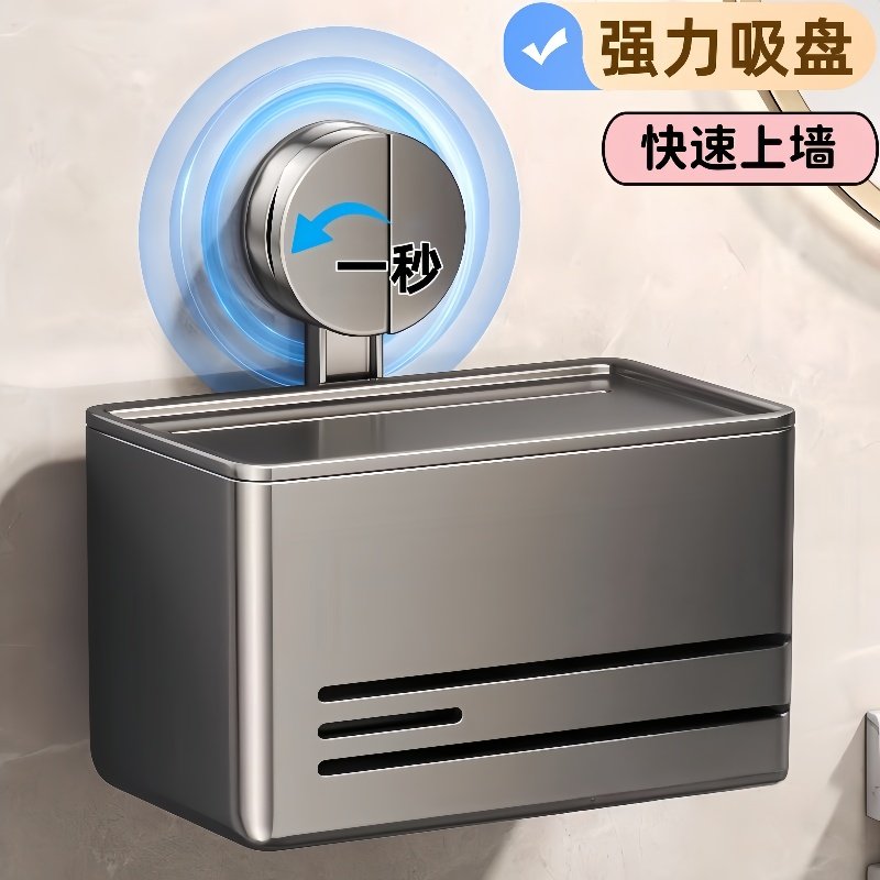 卫生间吸盘纸巾盒浴室壁挂免打孔厕纸盒马桶刷套装厕所收纳置物架