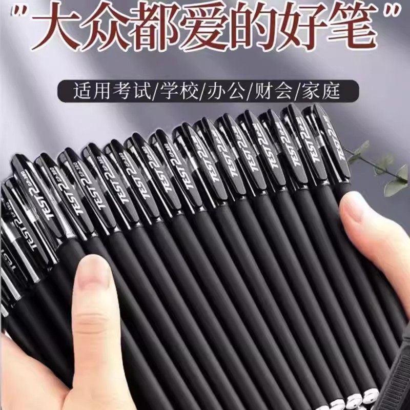 ST刷题笔高颜值按动中性笔圆珠笔黑色水笔小学生专用考试0.5速干碳素笔水性黑笔按压式做笔记签字笔非按斤卖