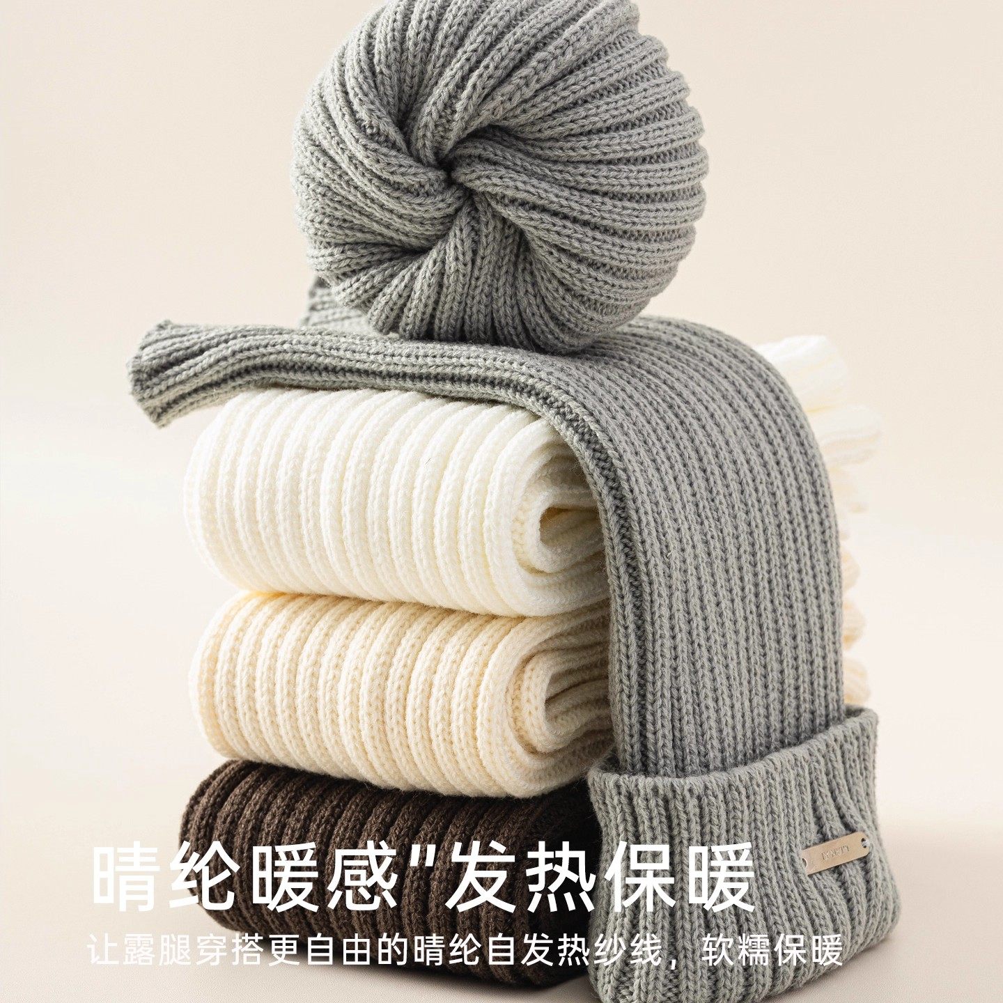 腿套女冬季加厚保暖白色针织袜套配雪地靴堆堆袜秋冬款女生小腿袜