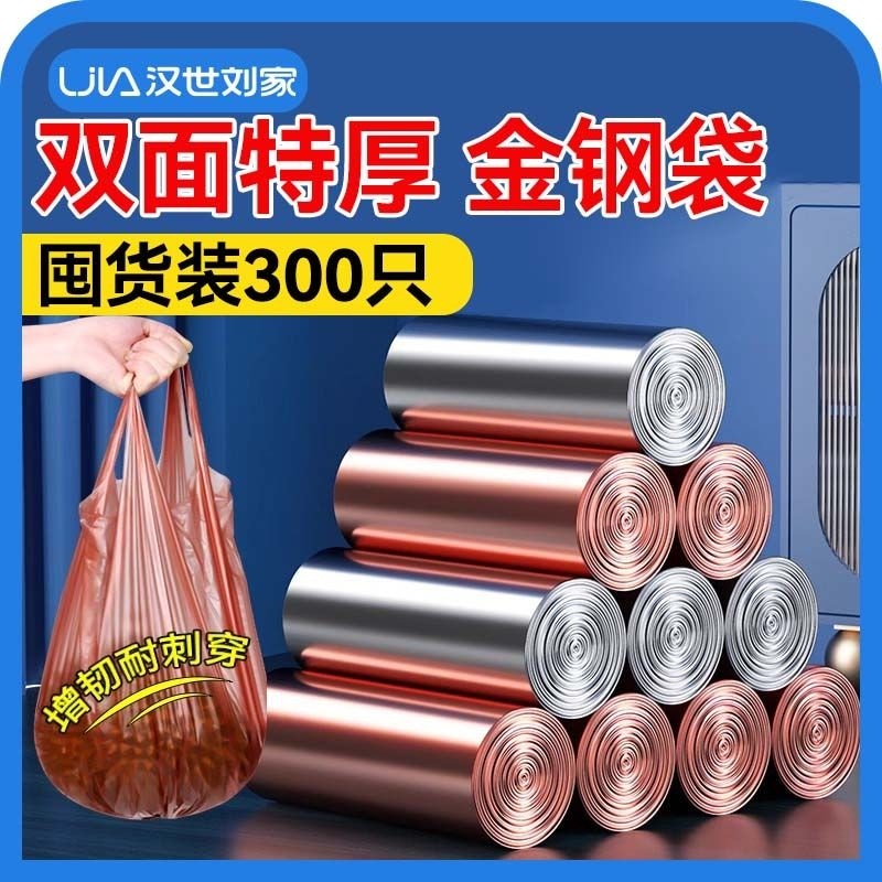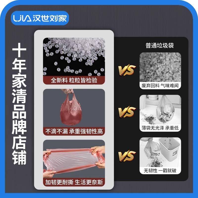 汉世刘家家用垃圾袋手提式加厚钢袋办公室大号实惠装背心式厨房袋