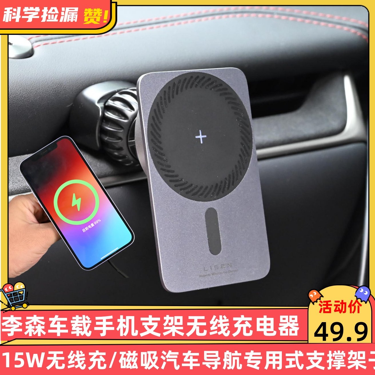 大牌车载手机支架无线充电器15W磁吸汽车导航专用式支撑架子