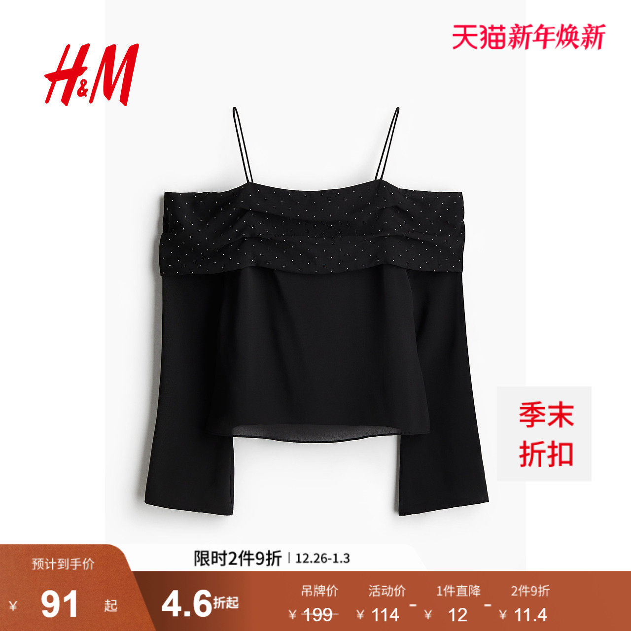 HM女士衬衫冬季露肩雪纺上衣1230671