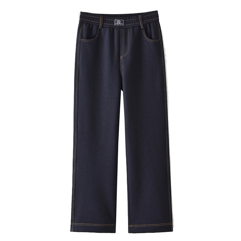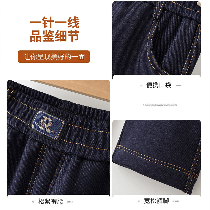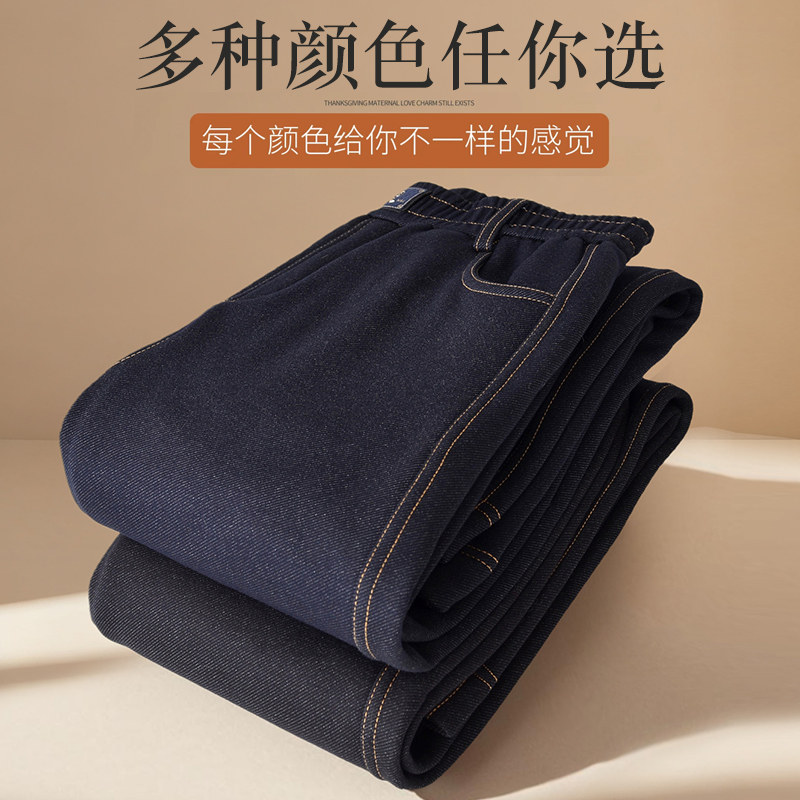 雅鹿妈妈春秋高腰显瘦直筒阔腿长裤中老年女装端庄大气宽松牛仔裤