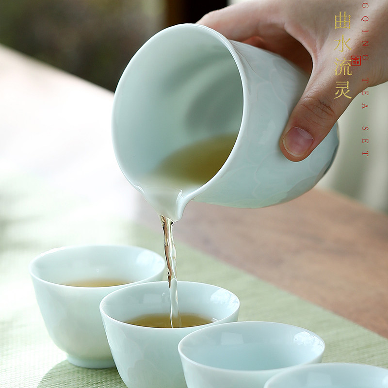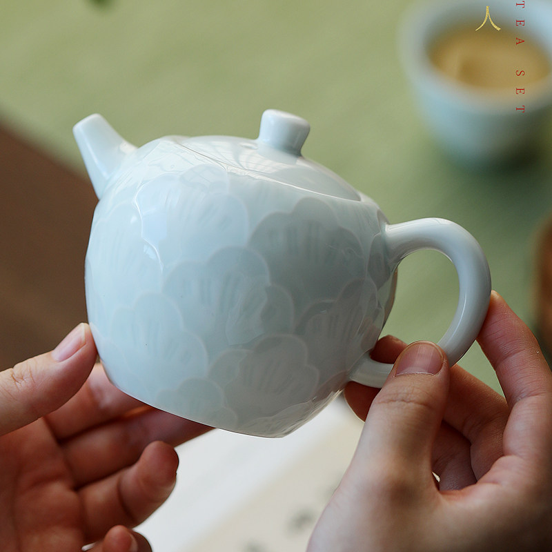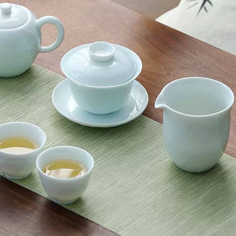 德化陶瓷影青茶具套装家用高档轻奢浮雕纹泡茶盖碗茶壶功夫茶杯