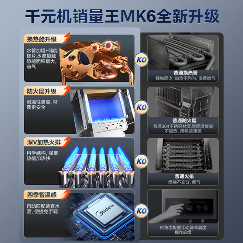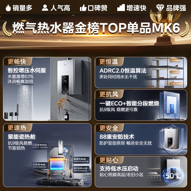 美的燃气热水器家用天然气16升13L增压水伺服节能恒温即热洗澡MK6