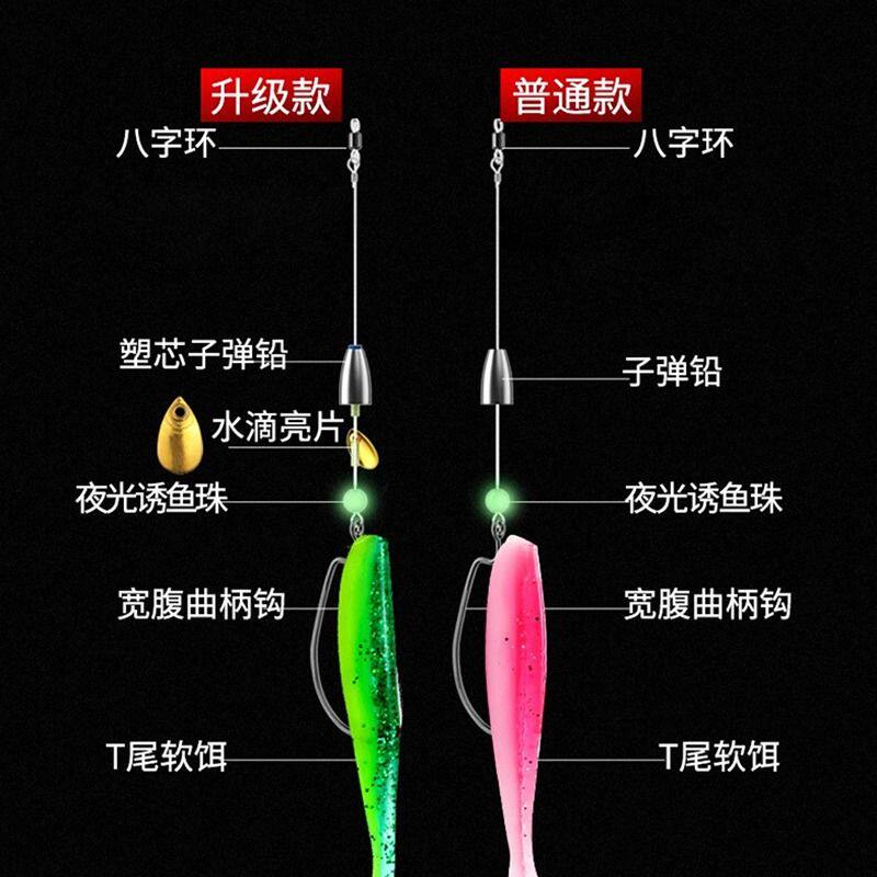 德州钓组套装成品曲柄钩线组路亚t尾软饵鲈鳜鱼鱼钩子线大物倒钓