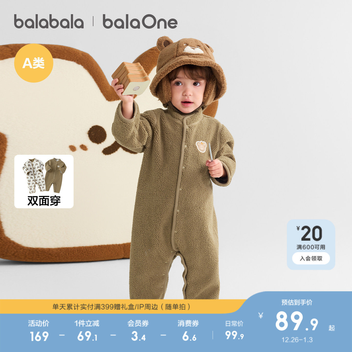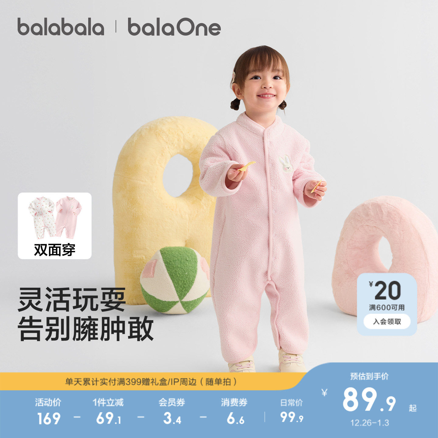 巴拉巴拉新生婴儿连体衣2025新款秋冬宝宝包屁衣爬服加绒两面穿萌