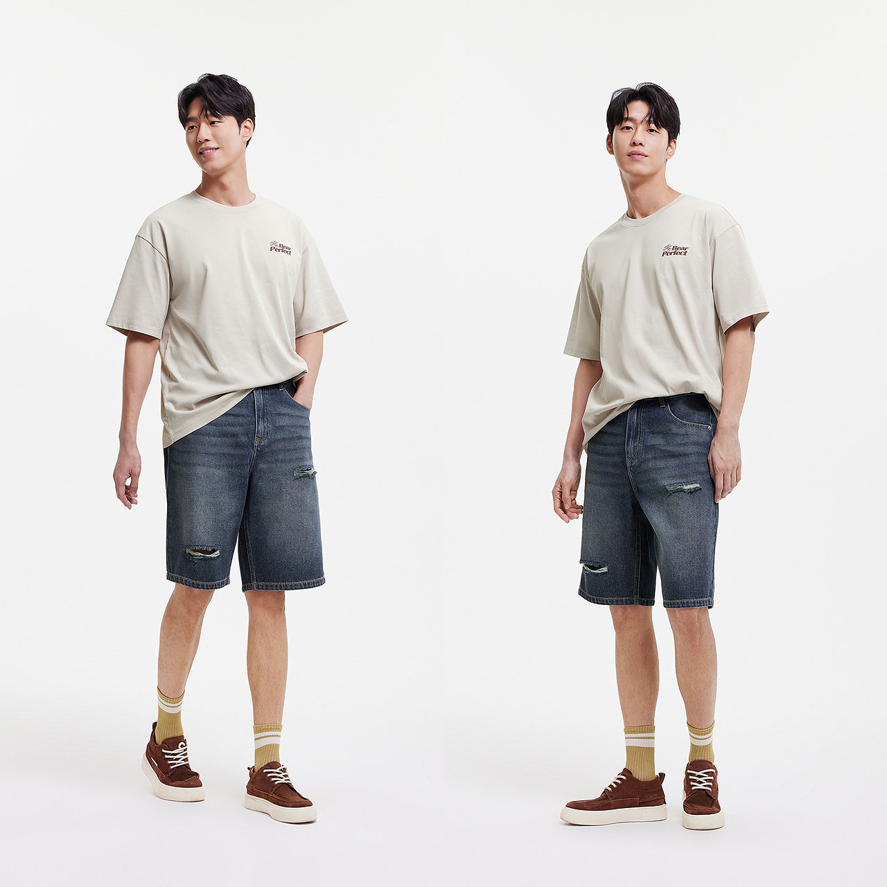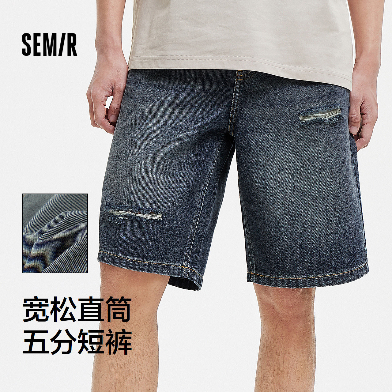森马牛仔短裤男做旧复古破洞裤凉感宽松五分裤2025夏新款时髦潮流