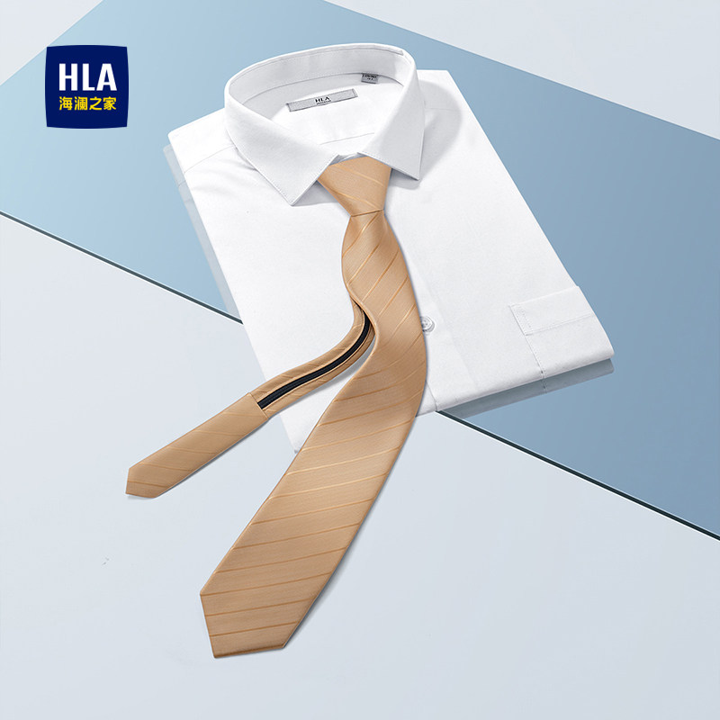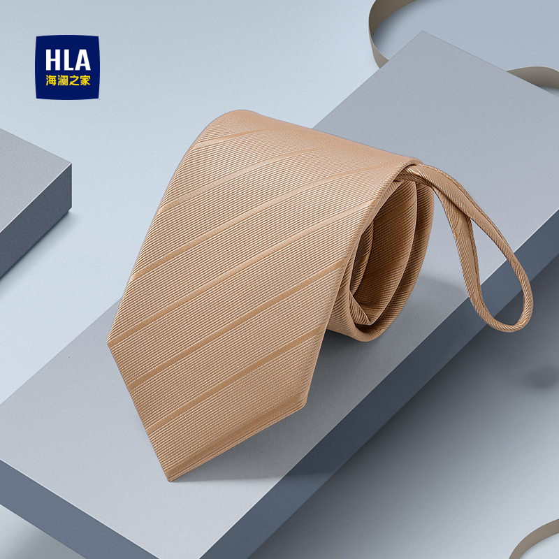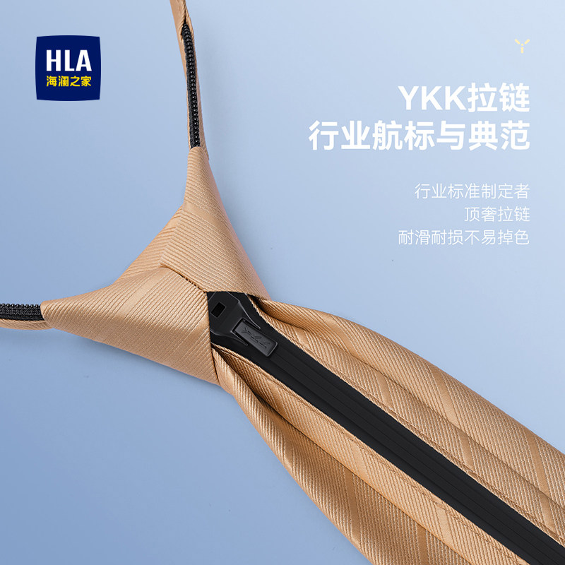 海澜之家免打领带男士商务休闲领花香槟色拉链款懒人时尚2025新款