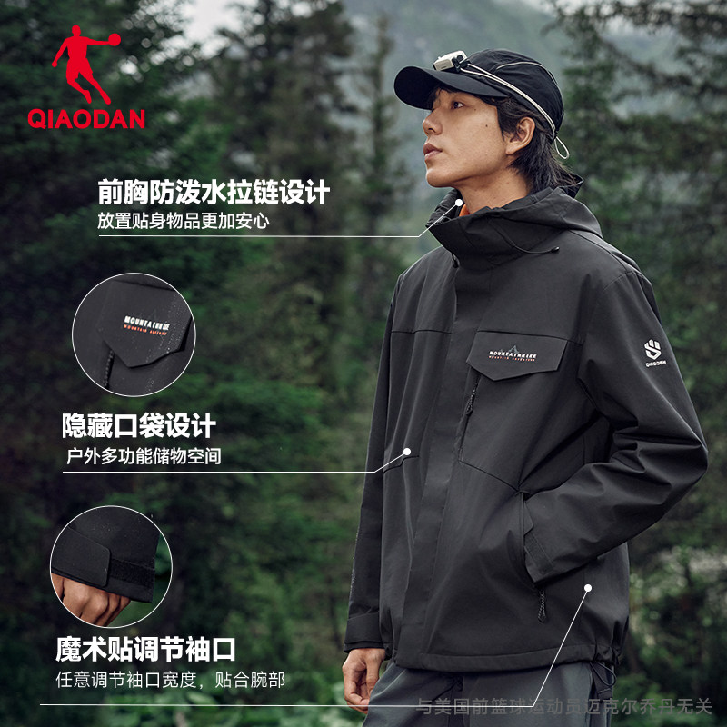 乔丹山神户外运动服男女款连帽防水外套防风保暖徒步登山风衣夹克