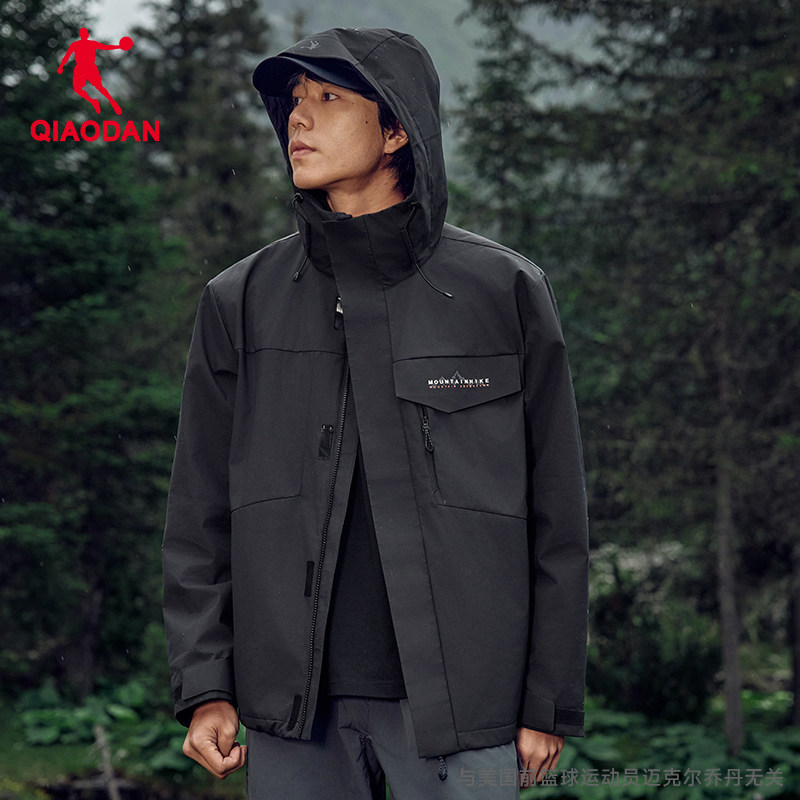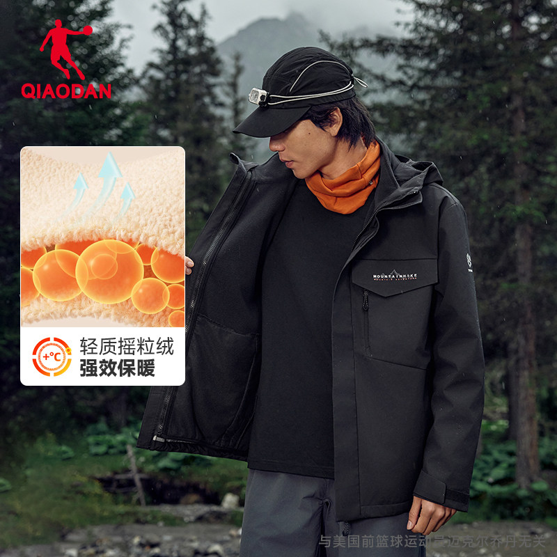 乔丹户外三合一风衣男2025冬季新款保暖防风冲锋黑色外套防水登山