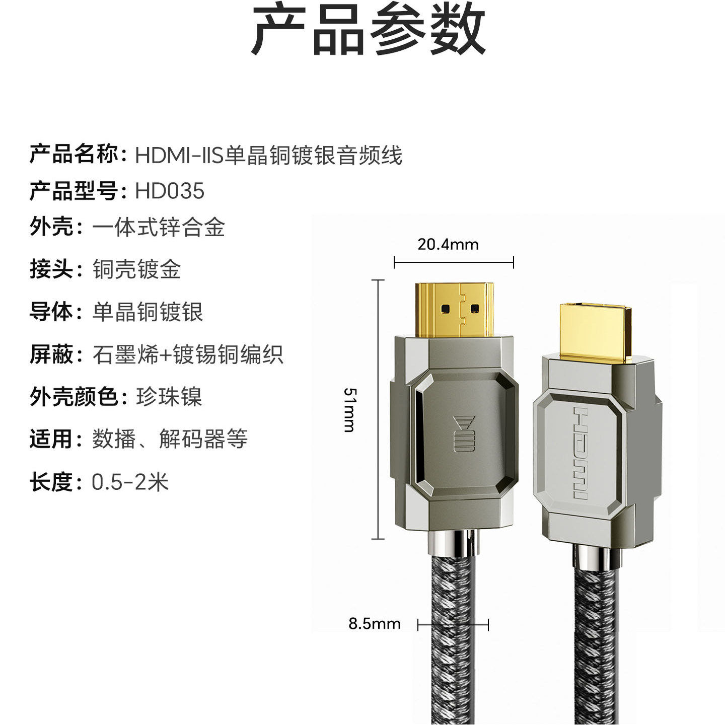 开博尔6N单晶铜镀银HDMI-IIS数字音频线发烧数码IIS解码I2S音频线