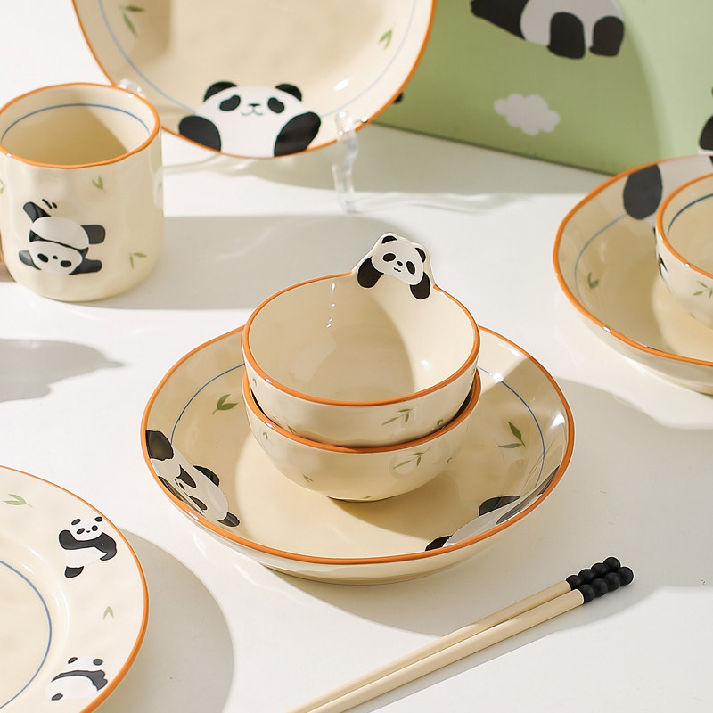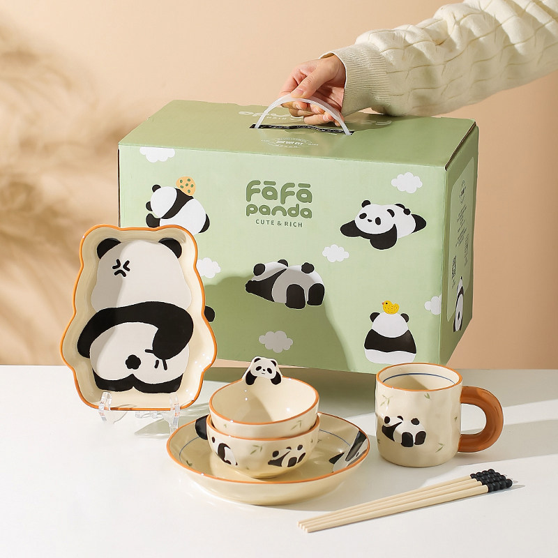 川岛屋熊猫餐具礼盒碗碟套装一人用暖房搬家乔迁新居礼品生日礼物