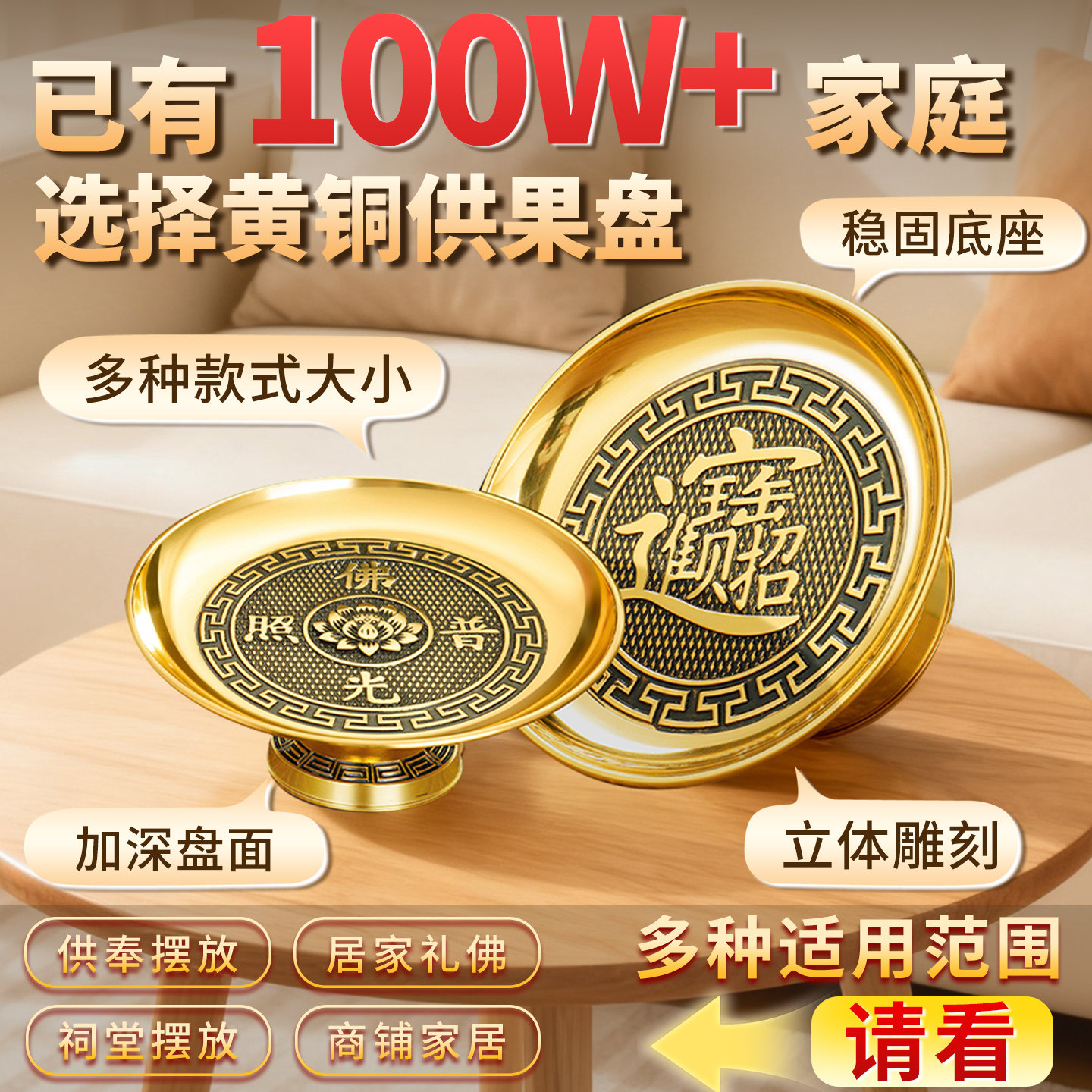 纯黄铜供果盘贡品盘家用佛前上供奉合金果盘财神果盘观音供佛用品