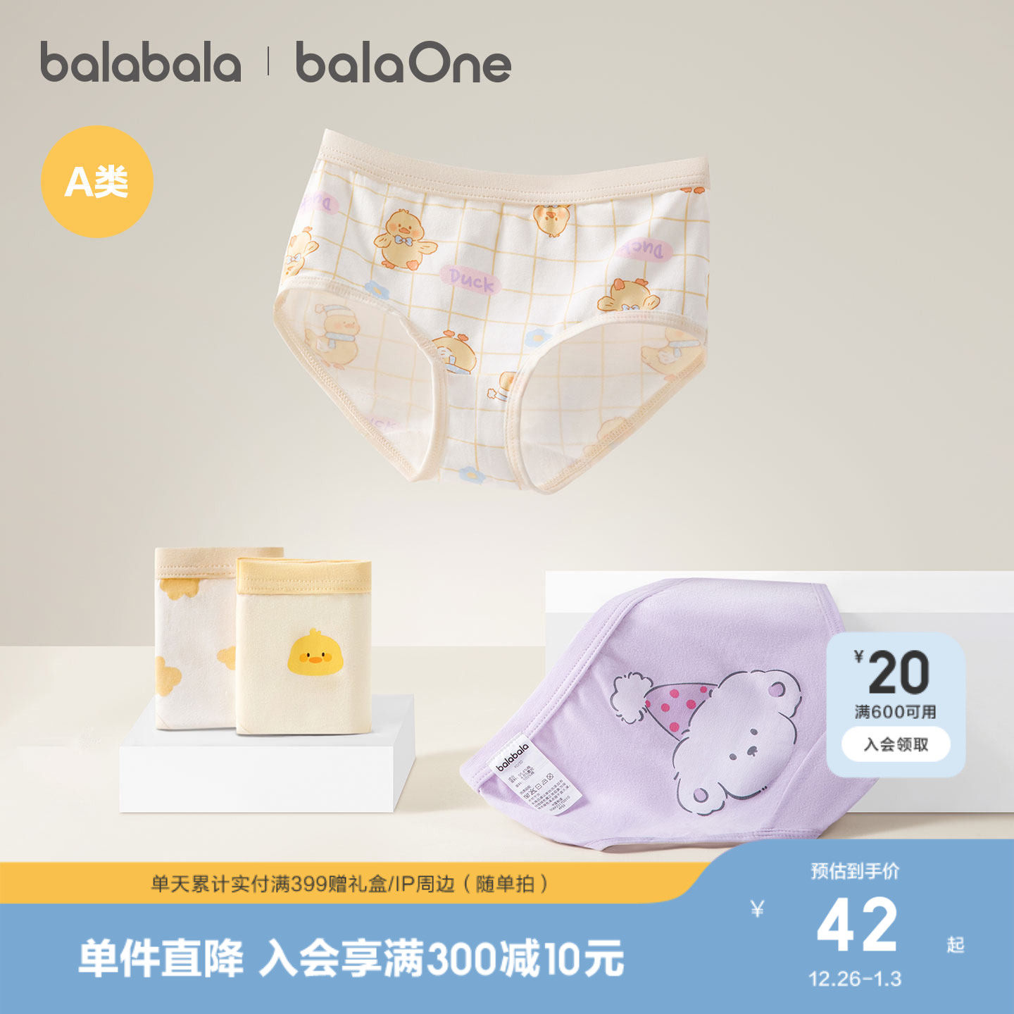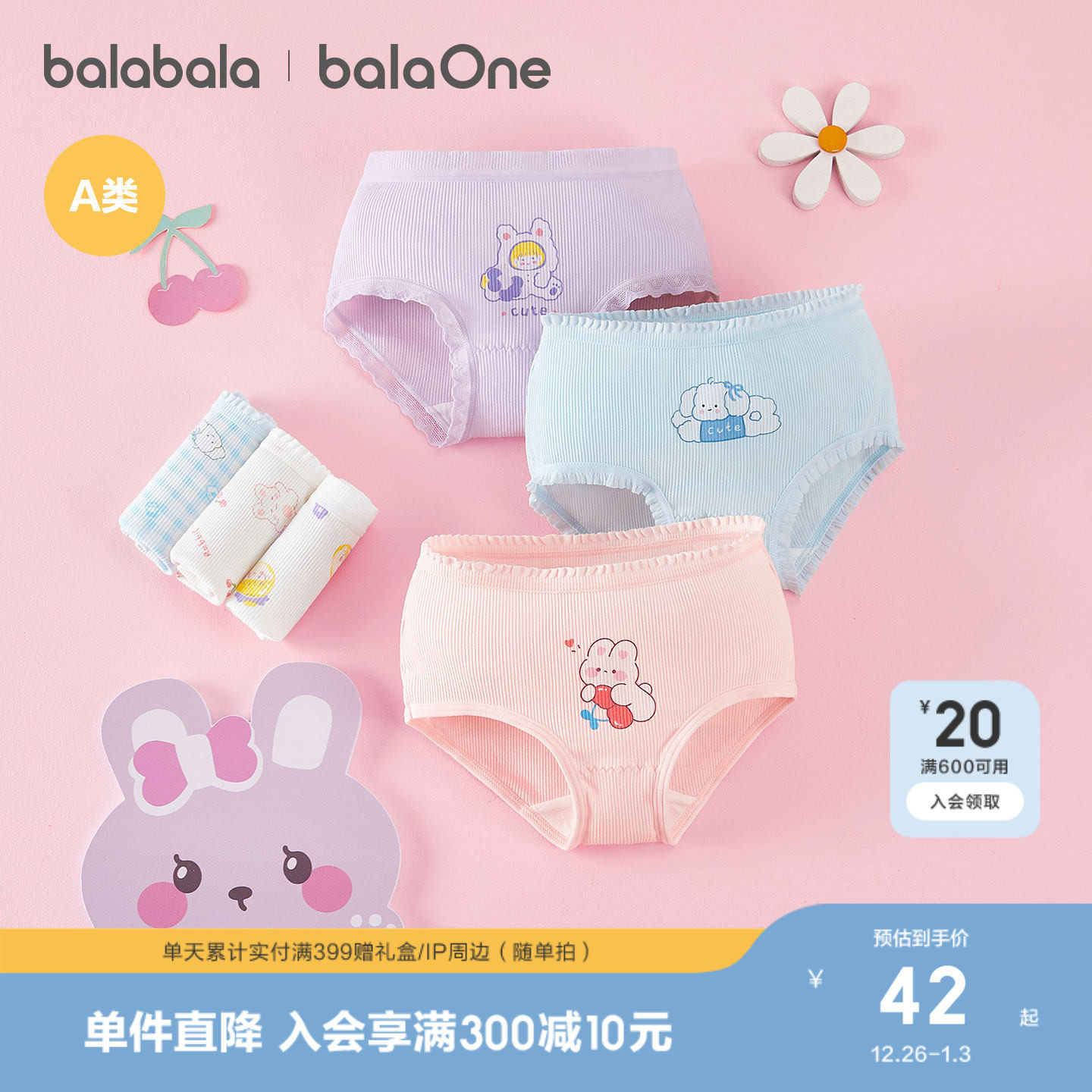 巴拉巴拉女童内裤棉平角儿童三角短裤小大童宝宝不夹PP四角三条装