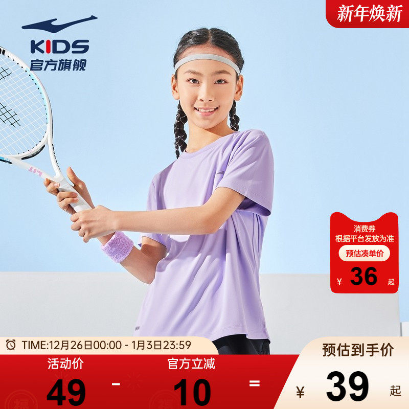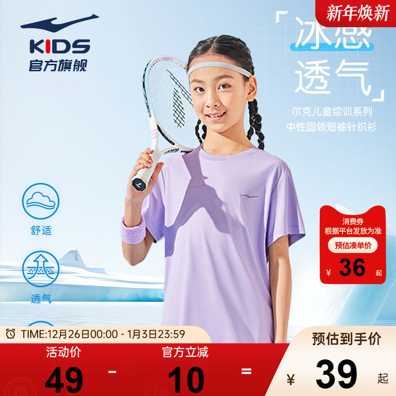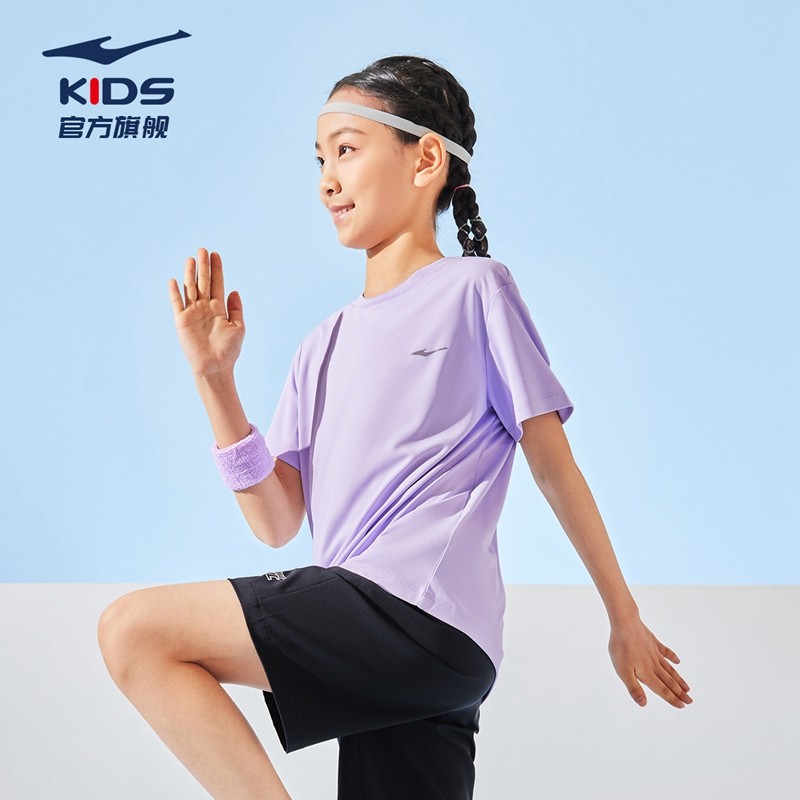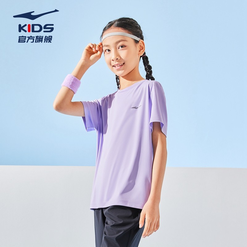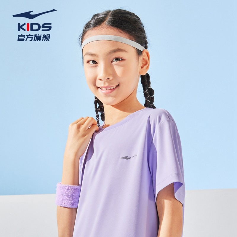 鸿星尔克童装女童速干短袖T恤2025夏季新款儿童透气薄款凉感上衣