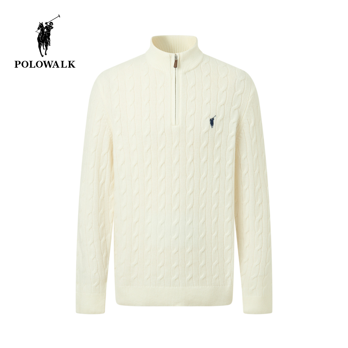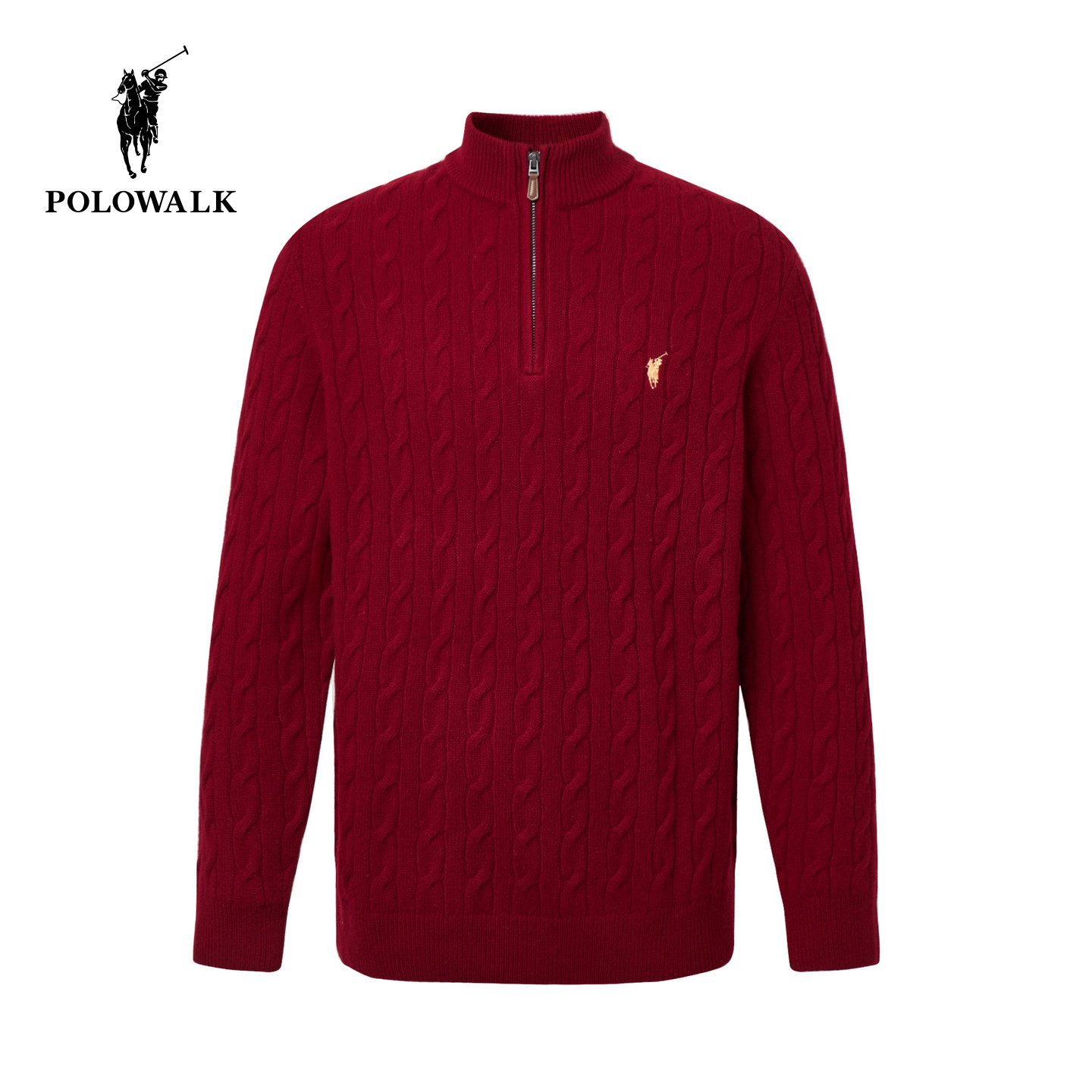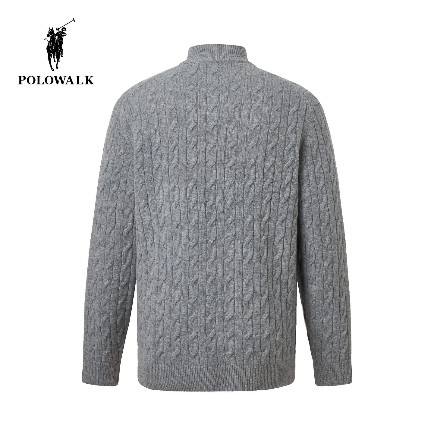 【100%绵羊毛】POLOWALK男式羊毛衫2025冬季新品半拉链绞花套头衫