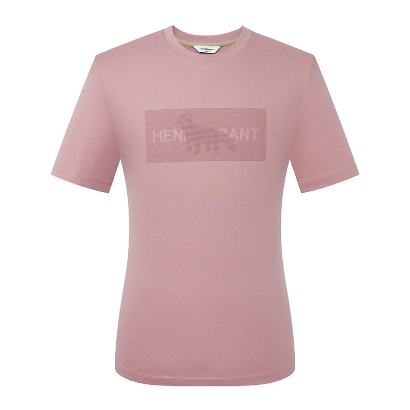 亨利格兰小熊猫男 夏季新款罗纹英伦休闲粉色圆领清凉时尚短袖t恤