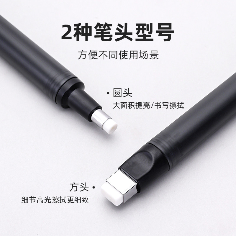 蓝果按动橡皮擦免削橡皮笔铅笔橡皮无屑绘画美术专用素描高光聚屑成线干净4b儿童画画提亮精准擦除