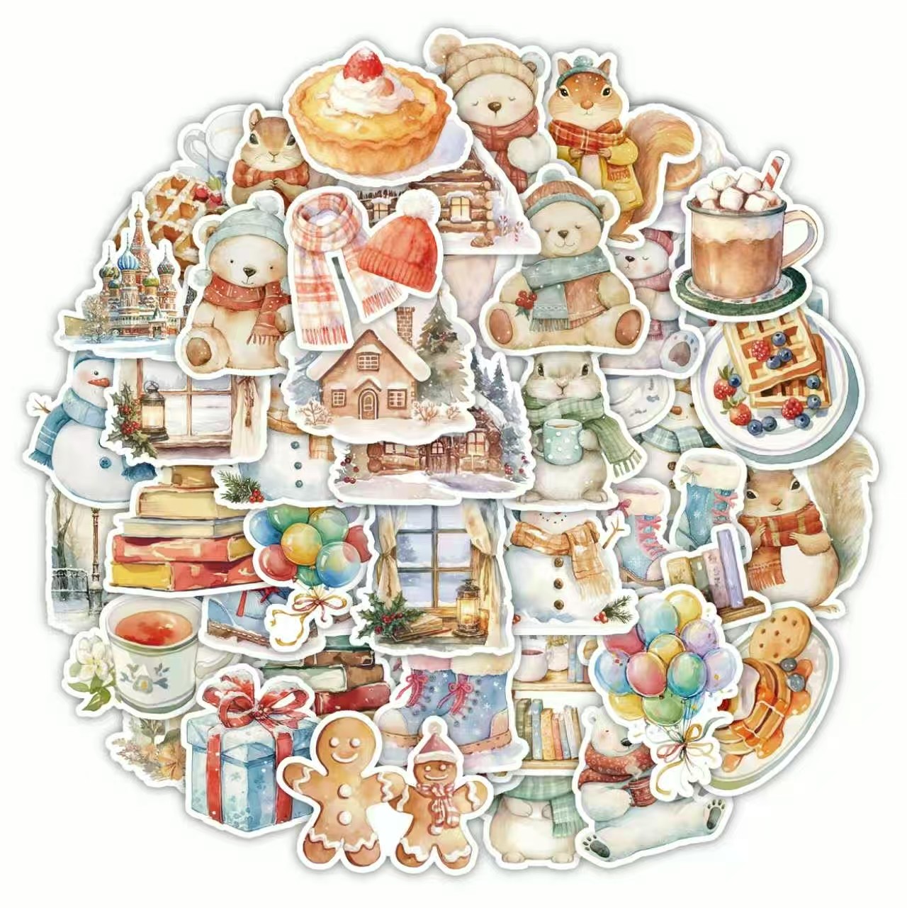 110张温暖冬日水彩食物华夫饼草莓贴纸可爱卡通装饰贴画手账素材