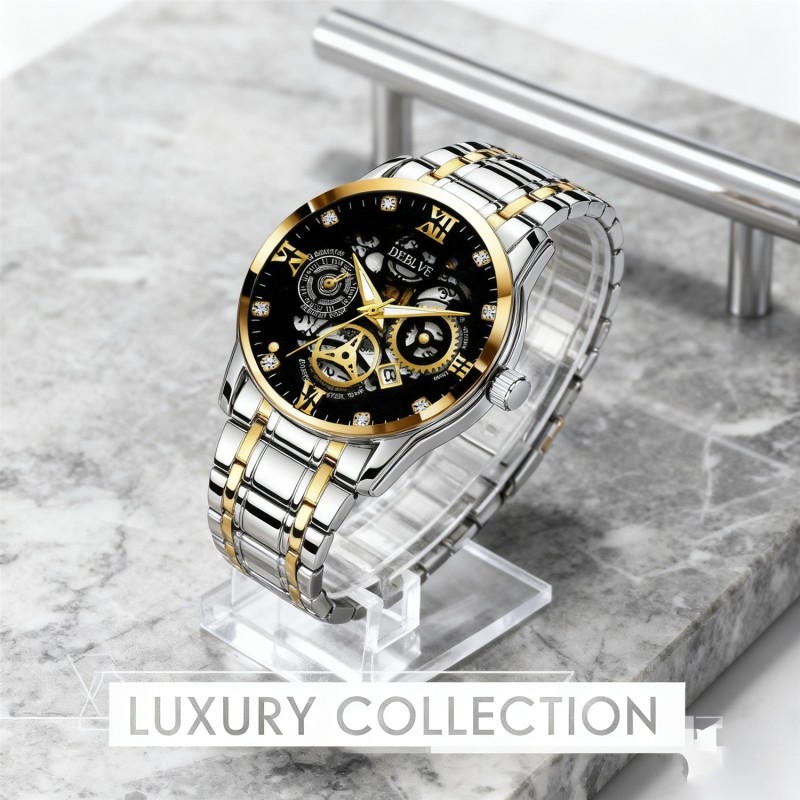 正品瑞士2024新款手表男士全自动机械风防水精钢带双日历男表夜光