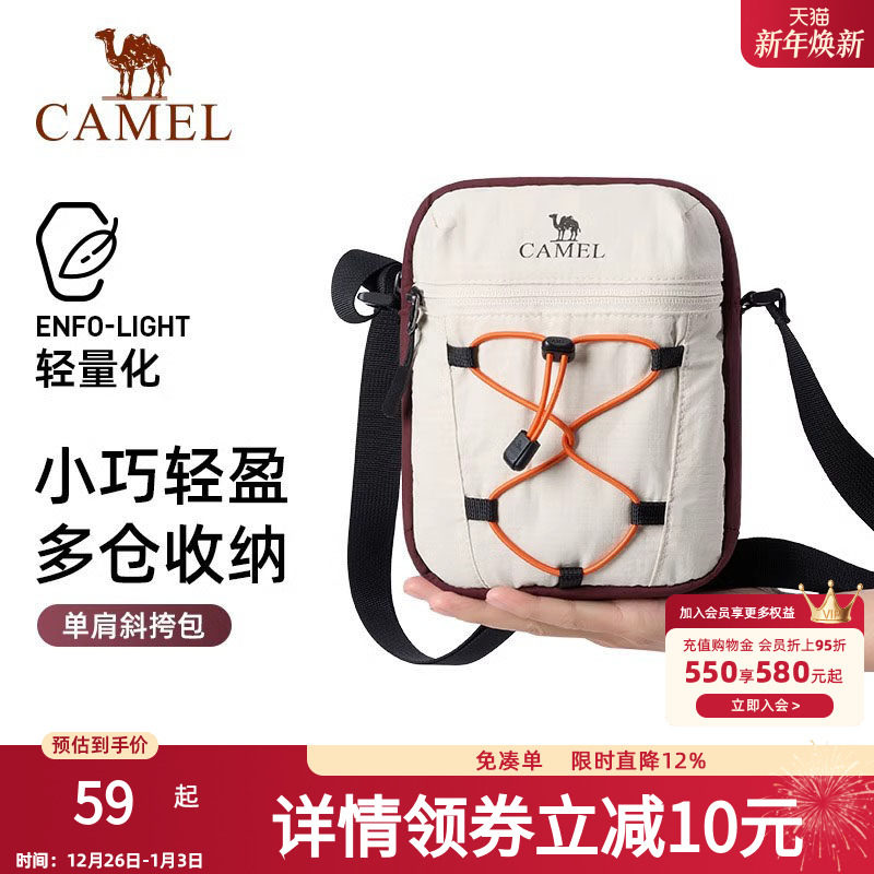 骆驼单肩饺子包通勤斜挎包肩带可调节大容量轻量化轻巧男女背包