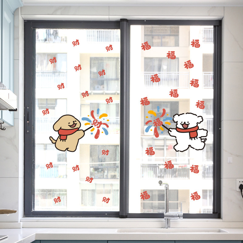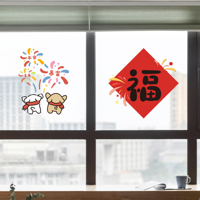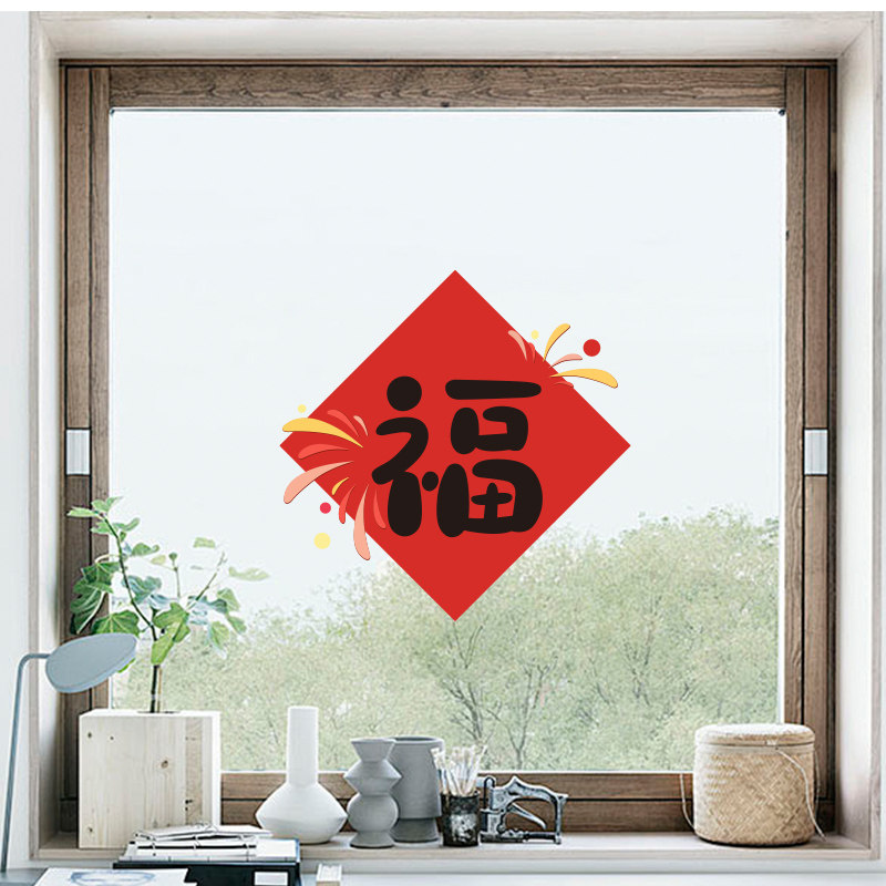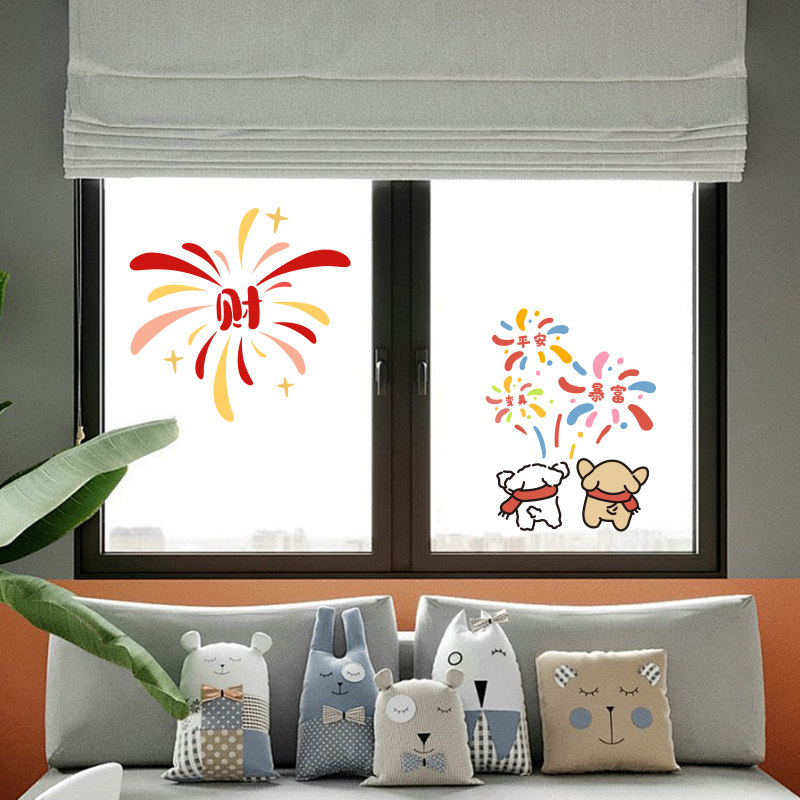 烟花送福新家装饰福字门贴乔迁窗花静电贴新款玻璃贴纸贴画装饰