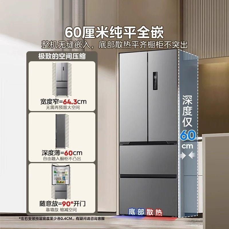 美的零嵌入式417超薄冰箱法式双开四门电冰箱家用小户型风冷无霜