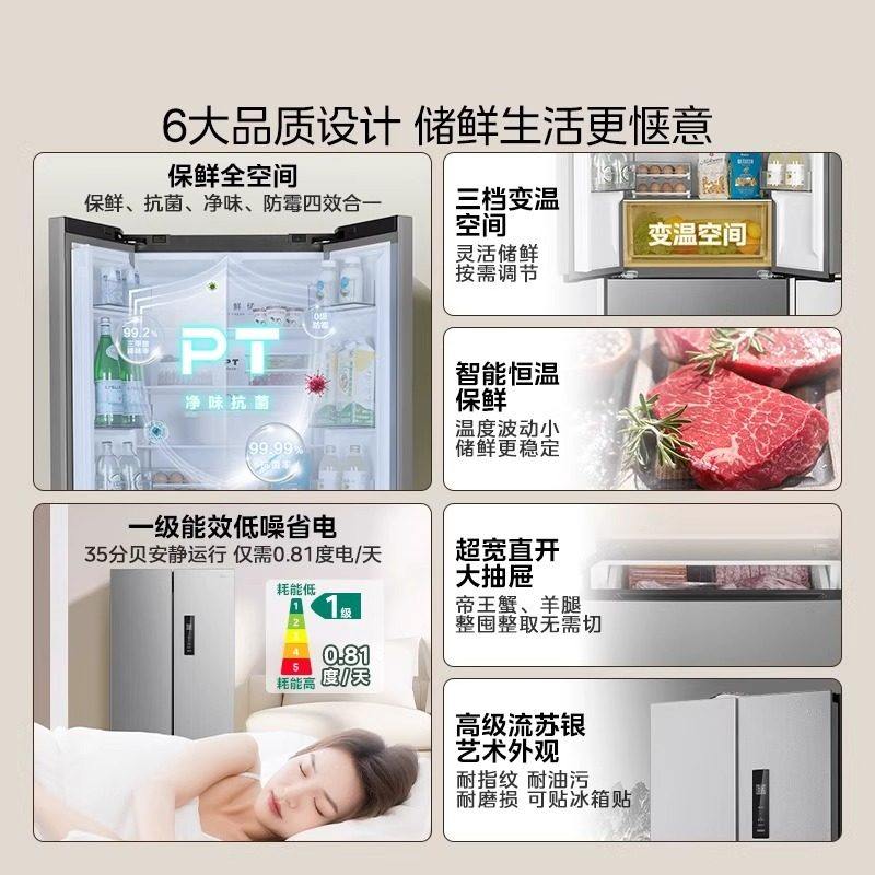 美的570+/606对开双开门两门大容量家用冰箱一级节能风冷无霜超薄