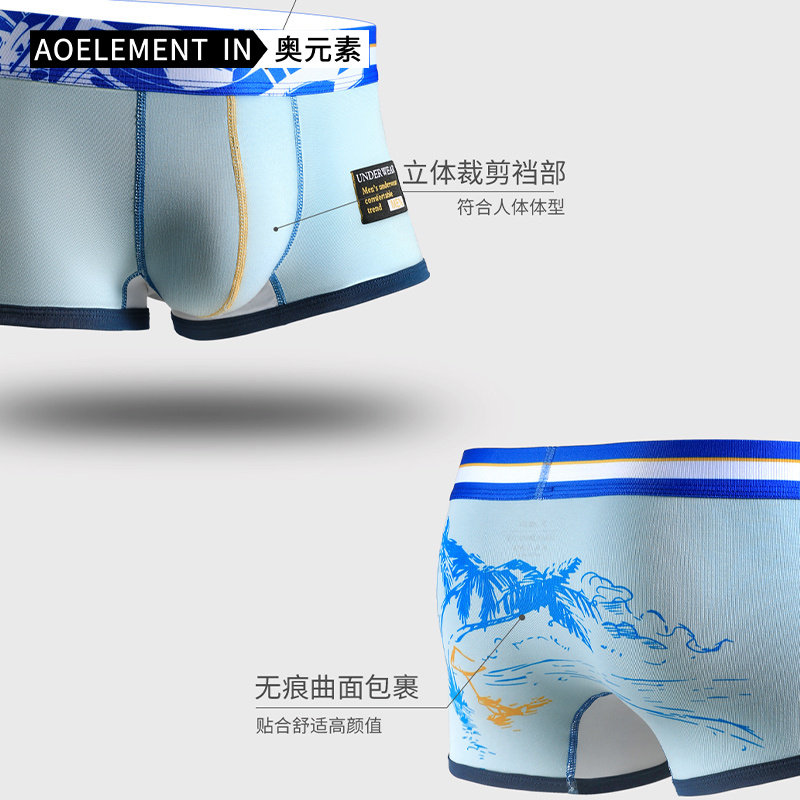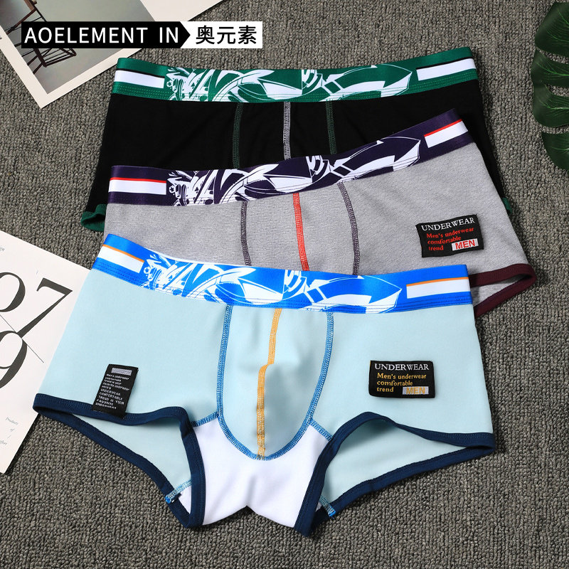 3条装男士内裤男潮流印花舒适平角裤薄款透气四角裤男生运动短裤