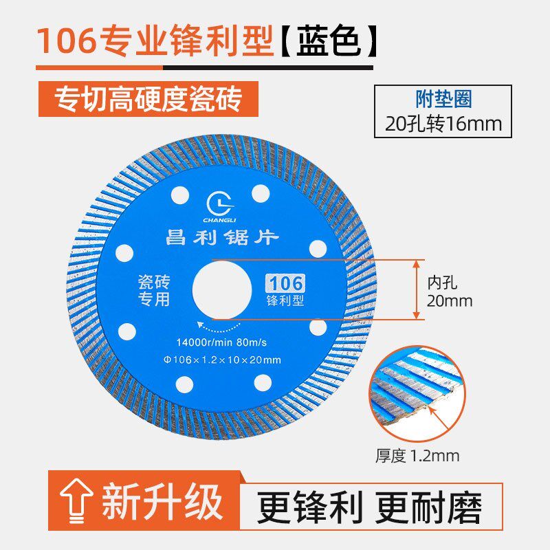 昌利106瓷砖切割片角磨机石材云石片玻化砖岩板锯片 超薄不崩边