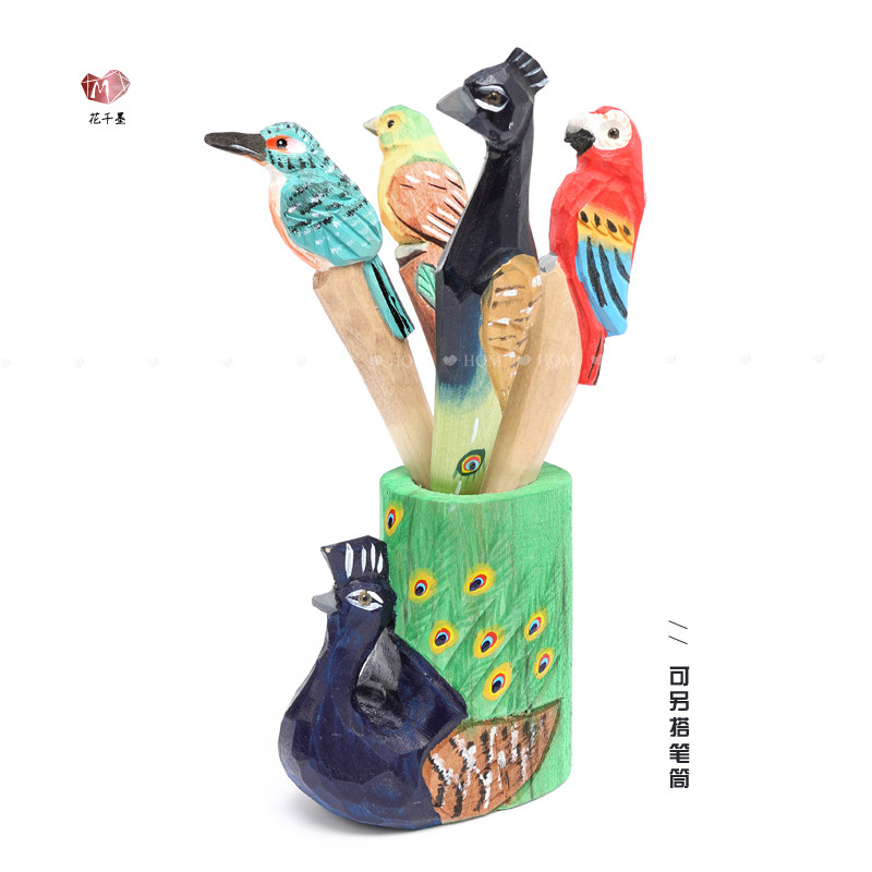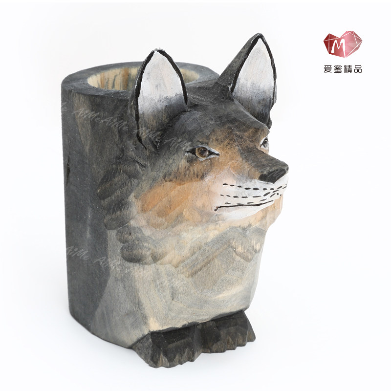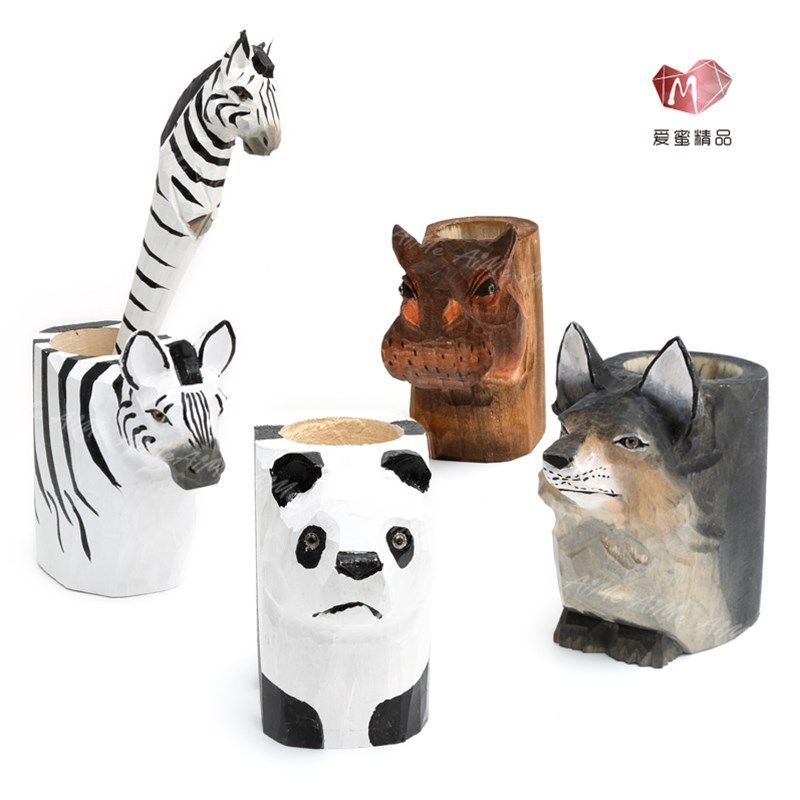 实木雕刻创意原木动物卡通笔筒摆件文玩文具收纳筒圆礼物拍摄道具