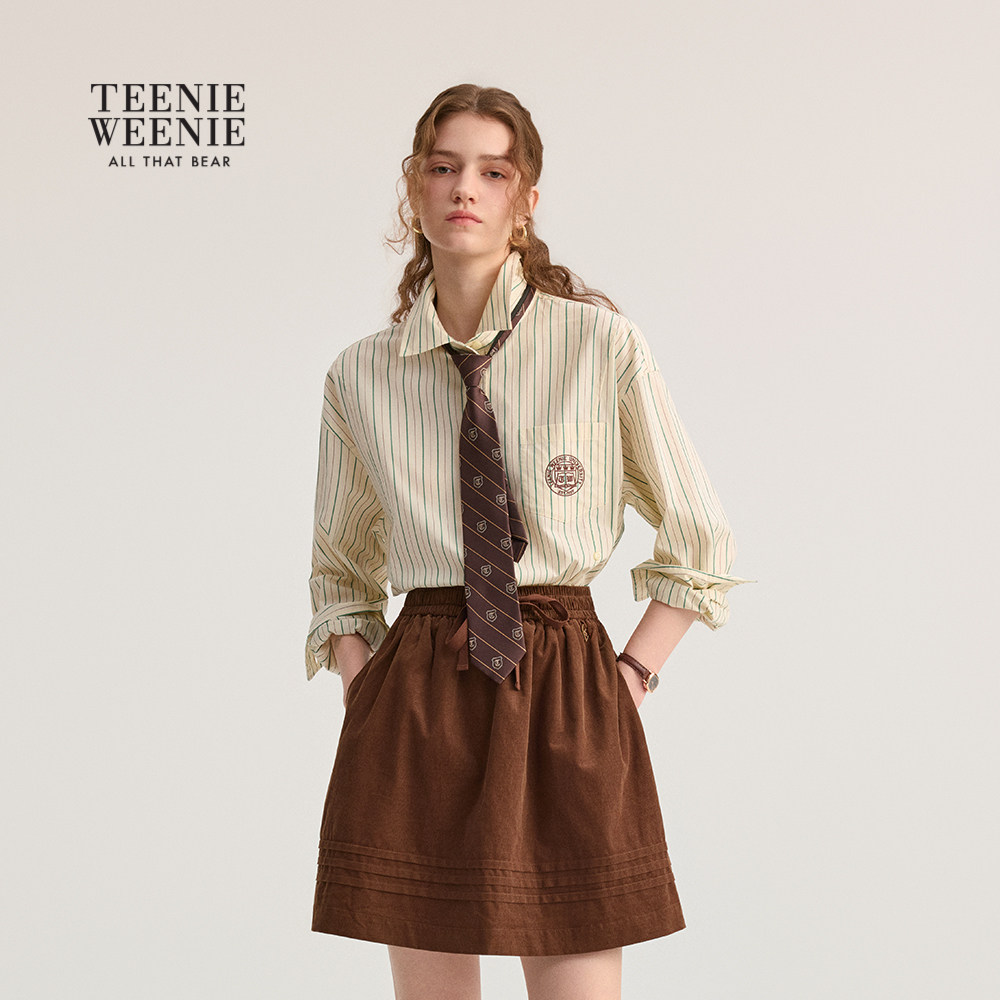 TeenieWeenie小熊奥莱2025年秋季新款优雅宽松条纹学院风领带衬衫