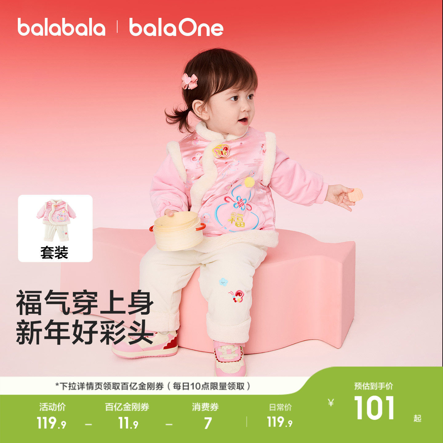 巴拉巴拉童装儿童套装女童宝宝男童两件套新中式2026百搭时尚衣服