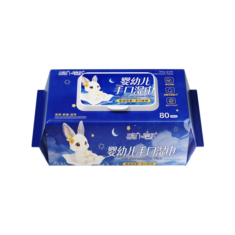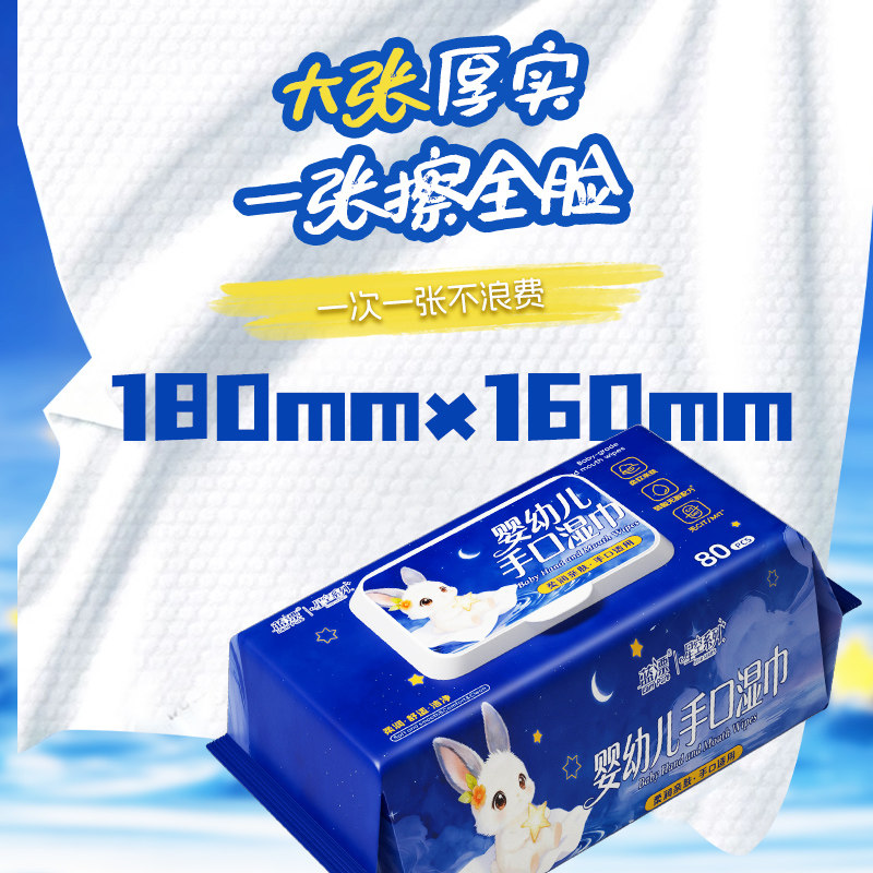 大尺寸80抽婴幼儿手口屁专用清洁湿巾亲肤湿纸巾整箱批家用实惠装