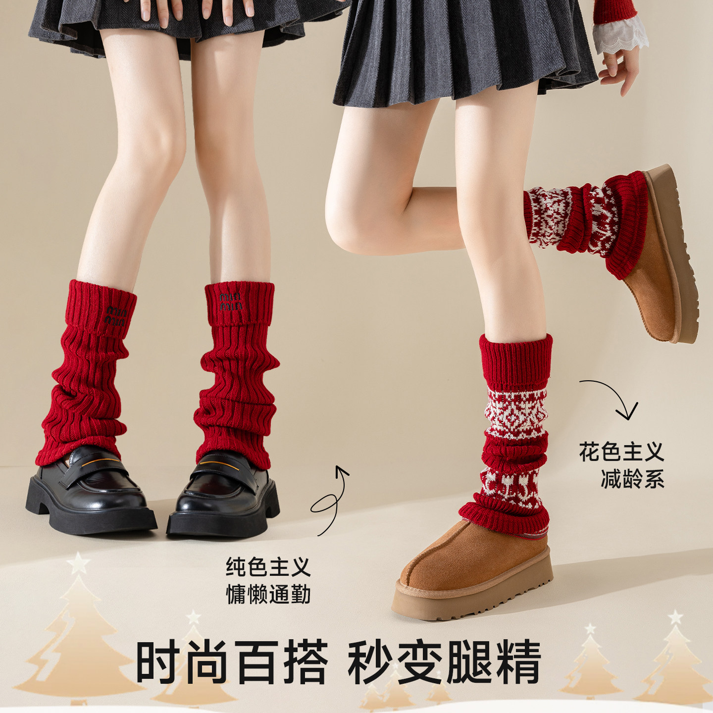 红色袜套费尔岛堆堆袜本命年袜子女款秋冬季加厚保暖腿套新年袜