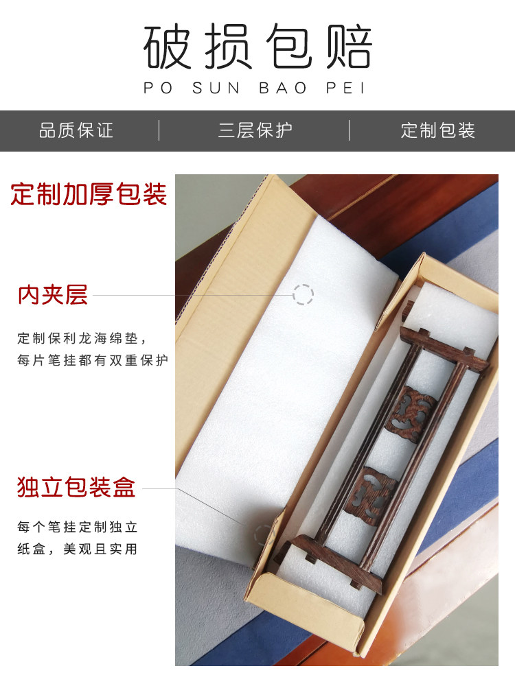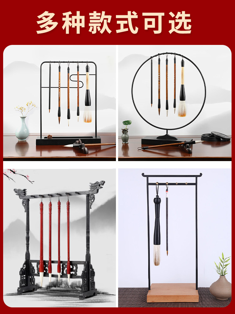 梅林笔庄毛笔架笔挂文房四宝复古套装挂毛笔的笔架毛笔挂简约现代架子实木鸡翅木初学小摆件创意书法工具学生