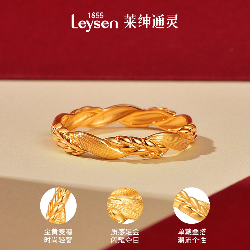 【计价金】莱绅通灵 麦穗足金999戒指 5G黄金女戒