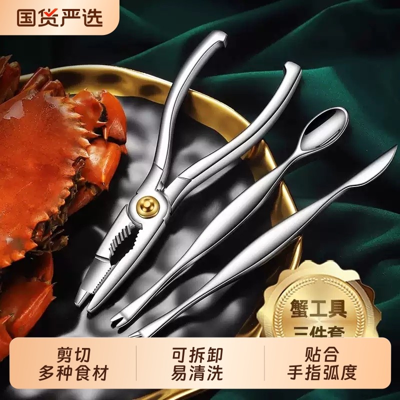 吃蟹工具螃蟹钳拆剥蟹神器三件套大闸蟹专用工具厨房剪刀套装食物
