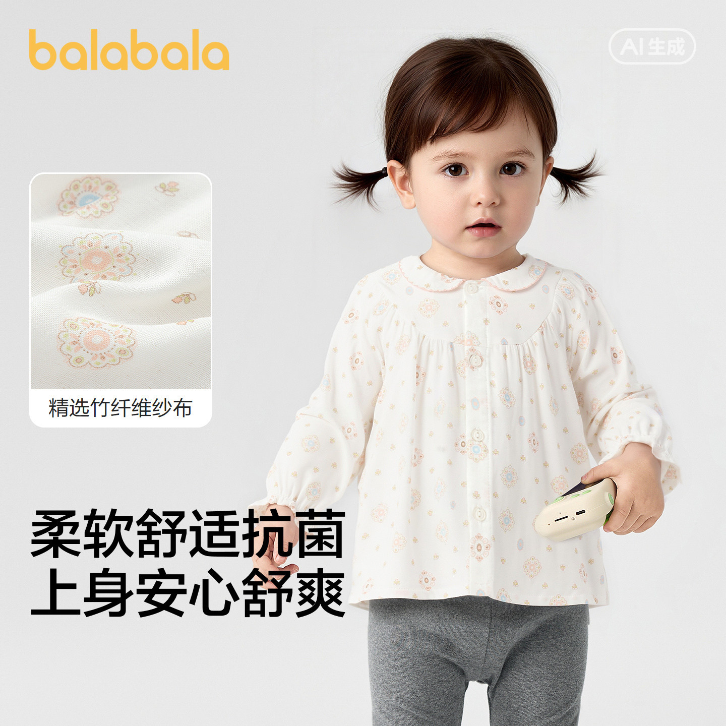 【商场同款】巴拉巴拉婴儿衬衫宝宝上衣男童2026新款简约清爽时尚