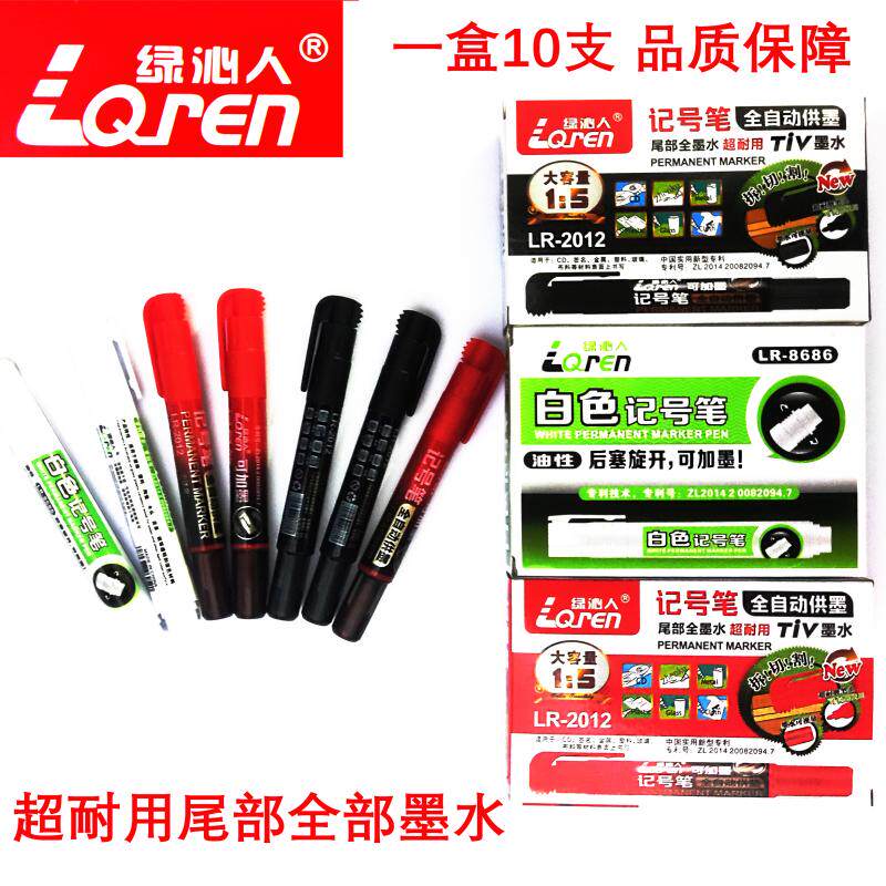 绿沁人记号笔储液式笔油性墨水擦不掉签字大头笔物流可加墨快递笔