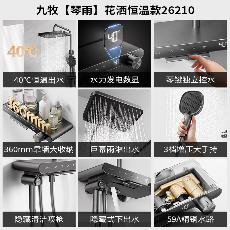 【李佳琦年货预售美妆节】九牧钢琴按键琴雨自动除垢恒温数显花洒